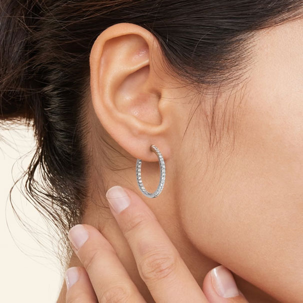 Our collection includes hoop earrings in different metals, from silver hoop earrings to gold hoop earrings and rose gold hoops. You can find the ideal pair to match your mood and outfit. Whether you're looking for large hoop earrings or small hoops, we have a pair that’s just right for you. Check out Skydell Design’s hoop earrings, like these gorgeous inside/out white gold diamond hoop earrings: