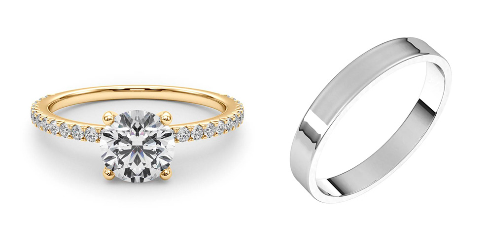 The tradition of wearing wedding rings dates back to ancient Egypt, where the circle symbolizes eternity. However, some superstitions surround wedding rings. In certain cultures, it’s believed that if a ring falls off or is lost, it signifies that the relationship is in jeopardy. Others believe that the left hand is more prone to bad luck, so some couples choose to wear their wedding bands on the right hand to protect their union. Skydell Design has a large selection of his and her wedding bands and engagement rings.