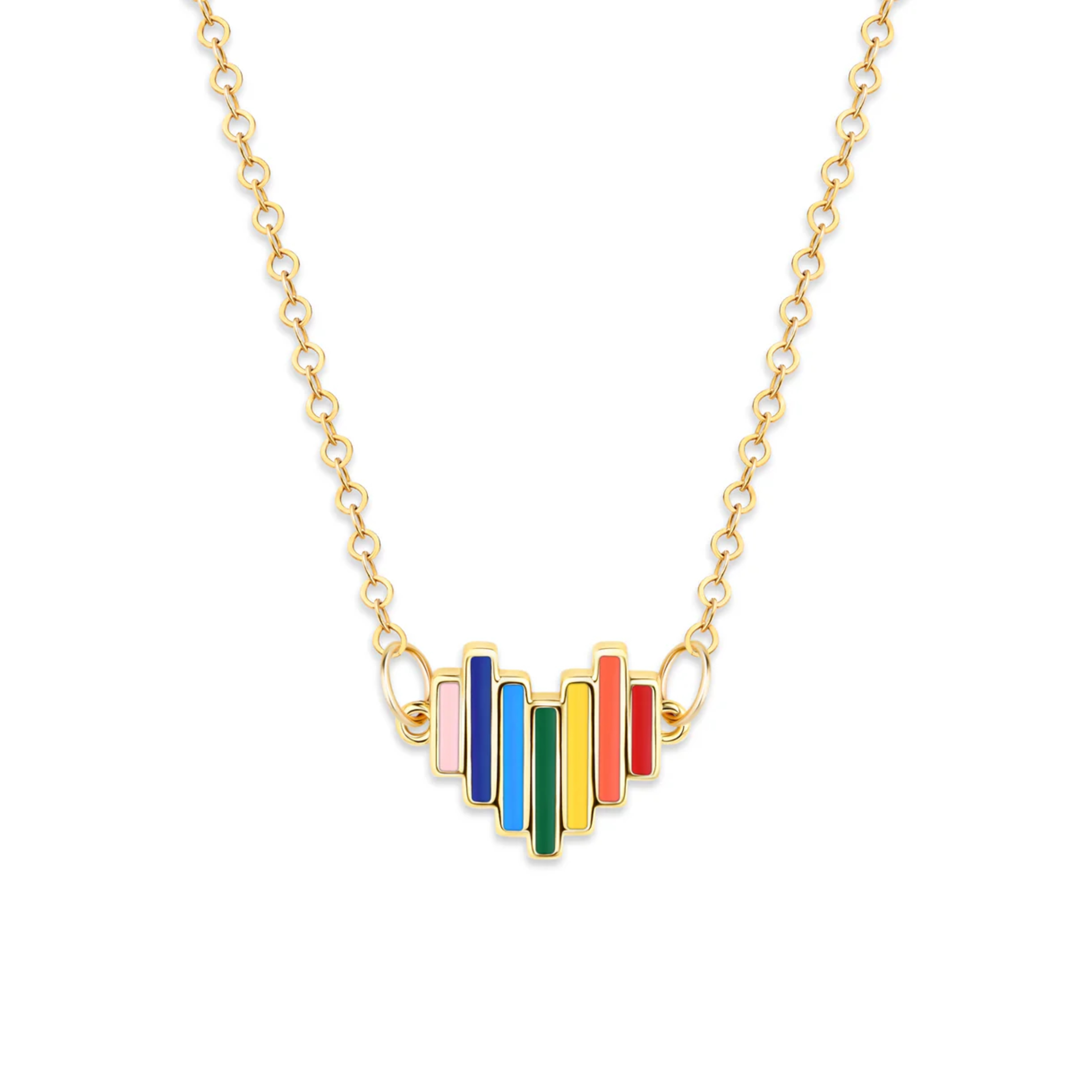 Our Rainbow Heart Necklace is a bold, beautiful expression of love and pride. Featuring multicolor gemstones in the shape of a heart, this necklace says “I love you, I see you, I’m proud of you” with every glance.