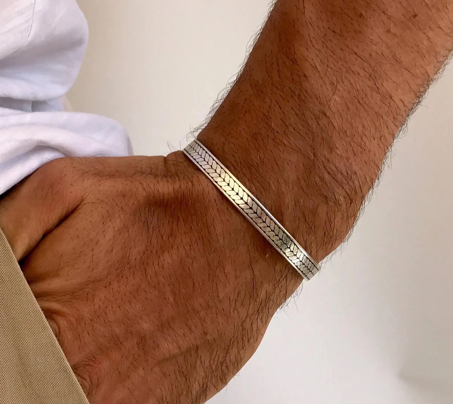 Silver Cuff Bangle Bracelet Comes in Yellow or white