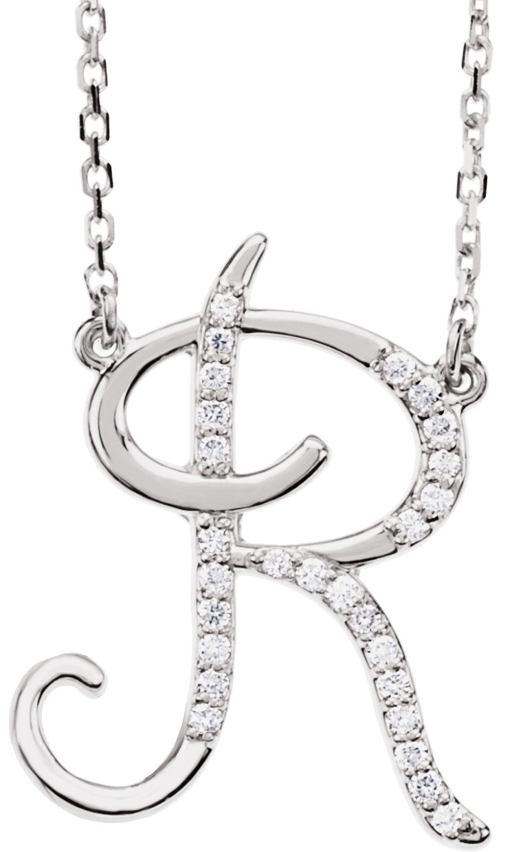 14K White .02 CT Diamond Script Initial A 16-18" Necklace