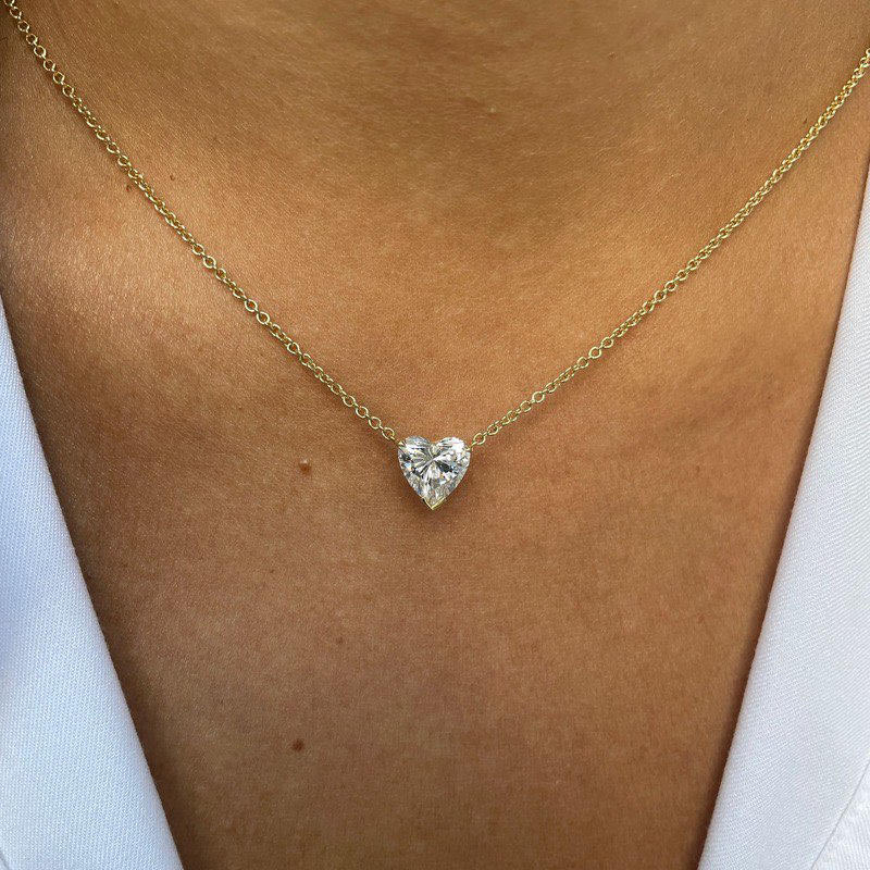 1.50 CT. Lab Grown VVS1 F Color Heart Diamond Set in 14KT White Gold Solitaire Pendant Necklace