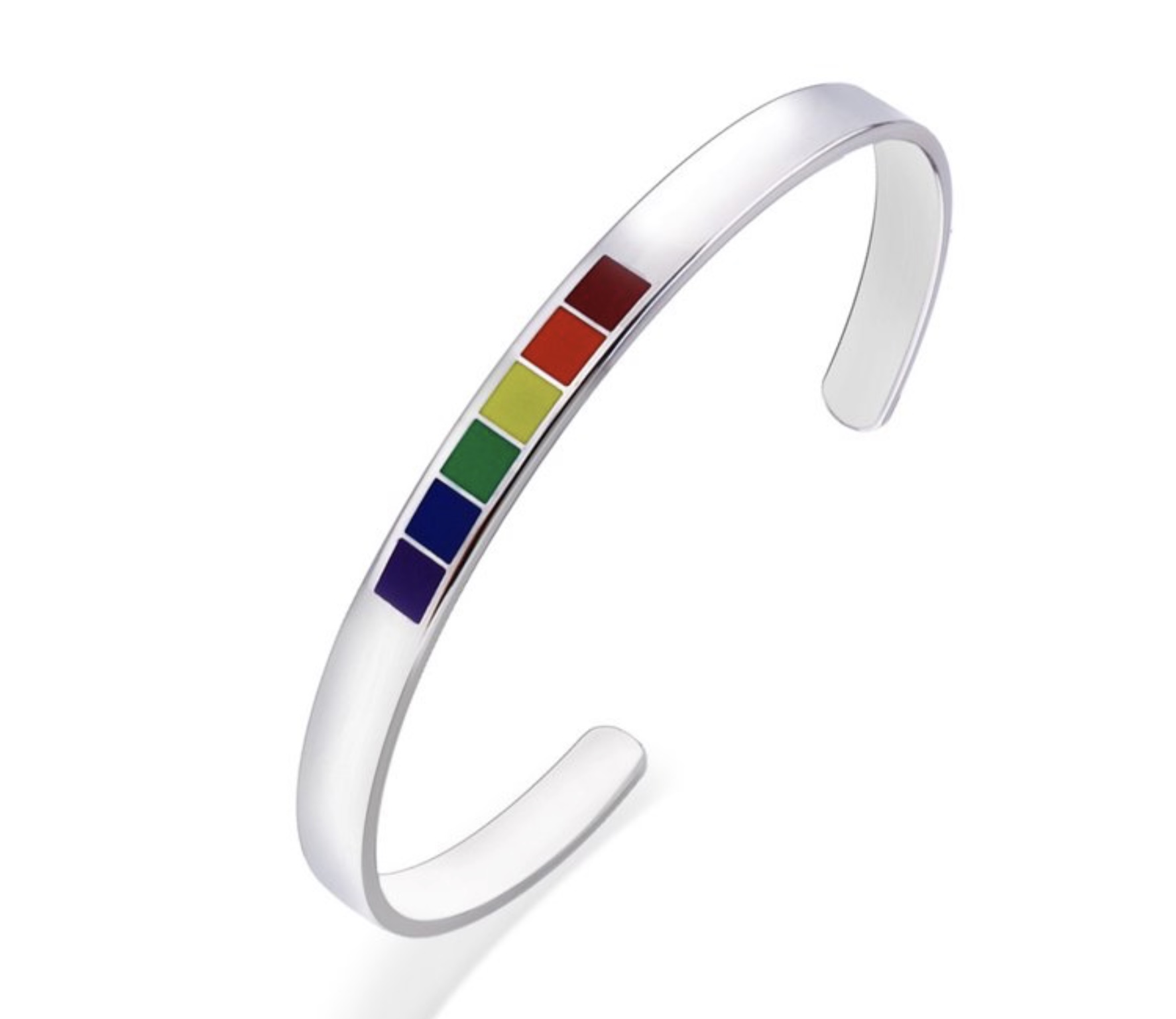 Celebrate love and identity with this Love Pride Bangle, designed for both Lesbian & Gay communities and allies. Crafted with a sleek 6mm width, this opening cuff bracelet features vibrant enamel detailing that symbolizes pride and inclusivity.