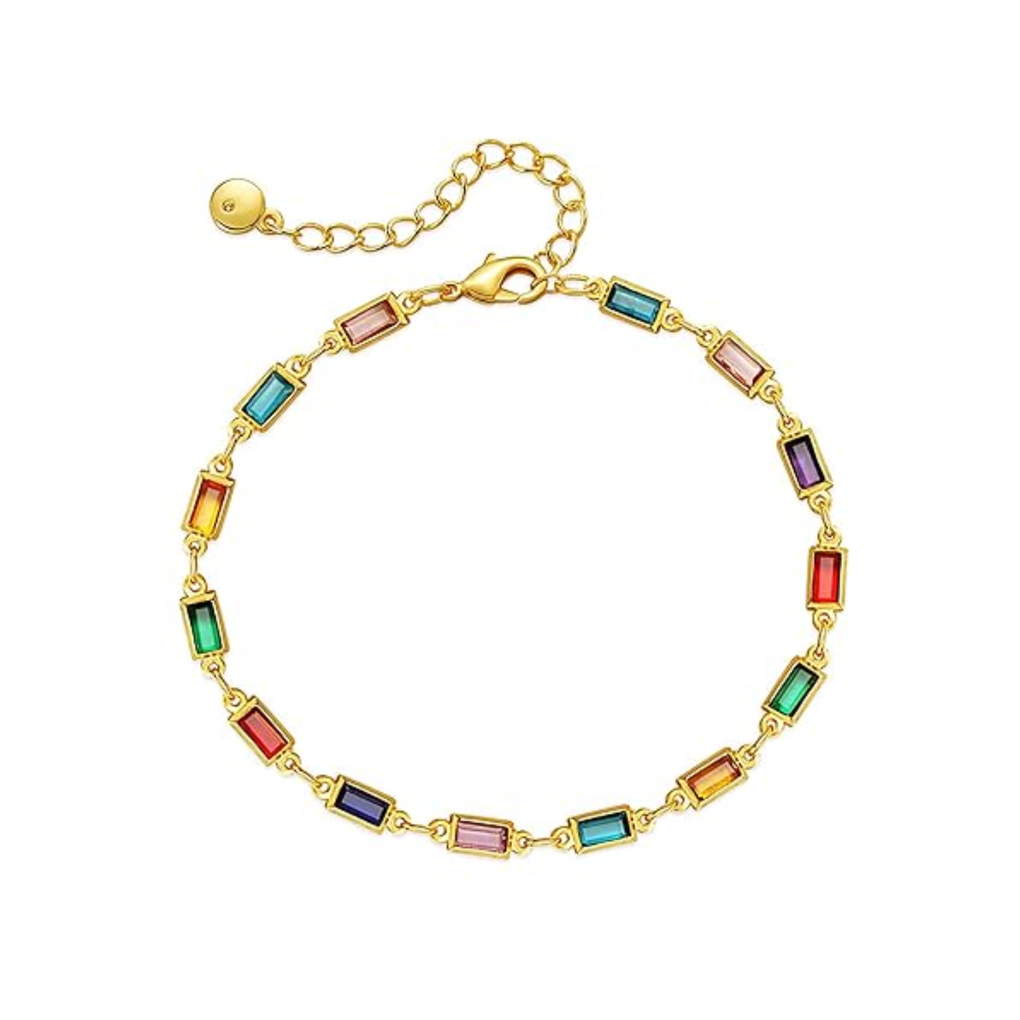Colorful Dainty Crystal Bracelet 18K Yellow Gold Plated