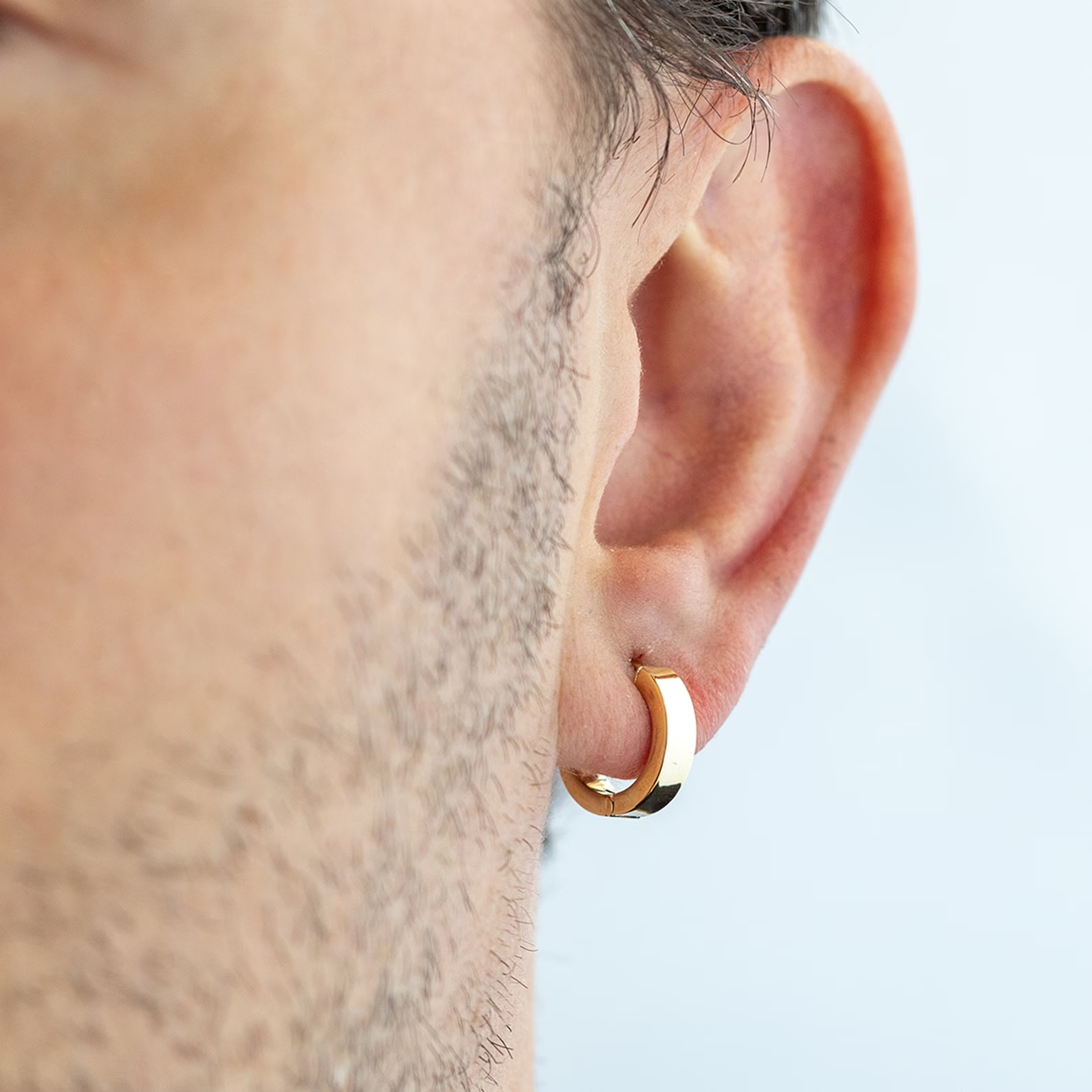 14k Solid Gold Hoop Earring, Yellow Gold Huggie Earrings, Sleeper Earrings, 4.20mm Thick / 15mm