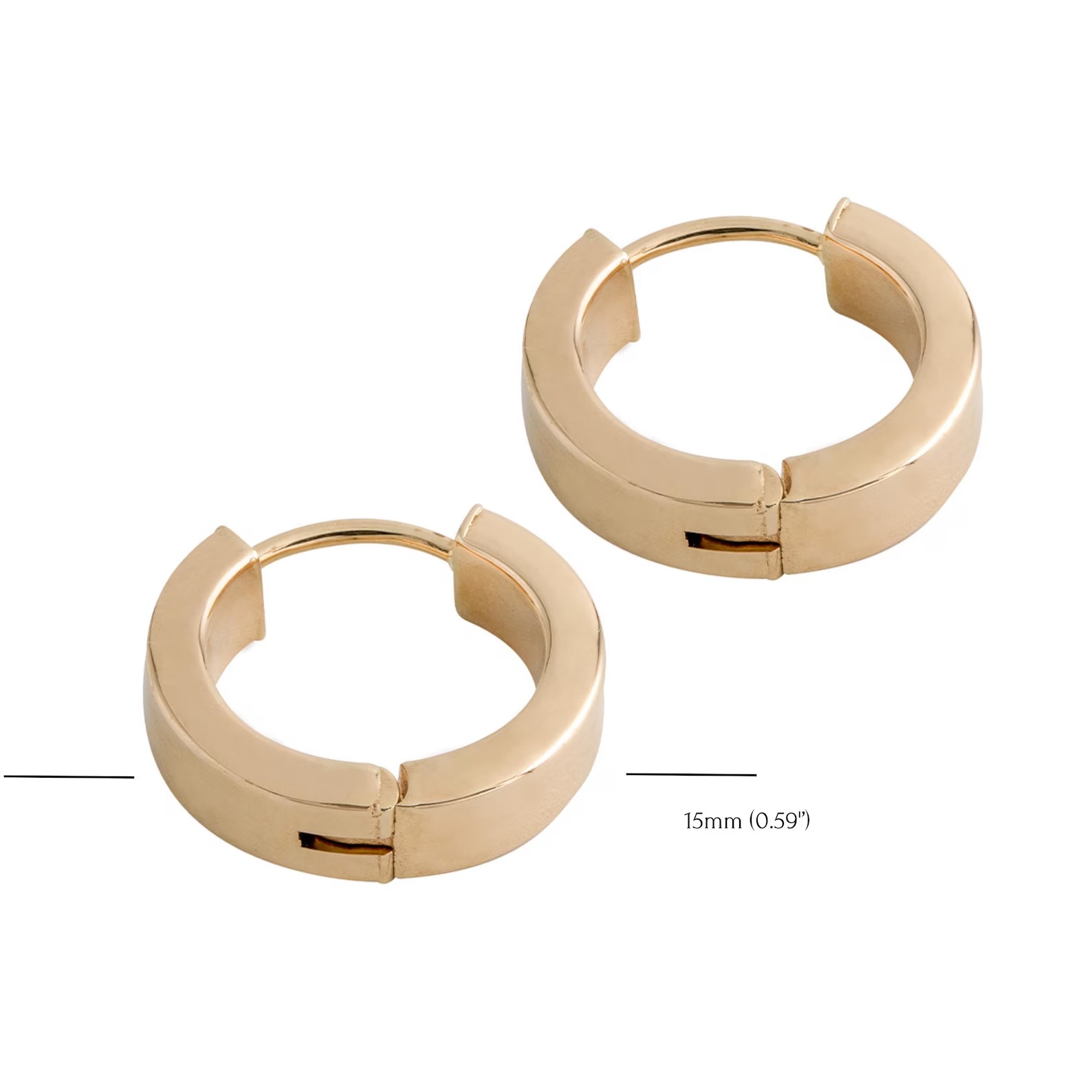 14k Solid Gold Hoop Earring, Yellow Gold Huggie Earrings, Sleeper Earrings, 4.20mm Thick / 15mm