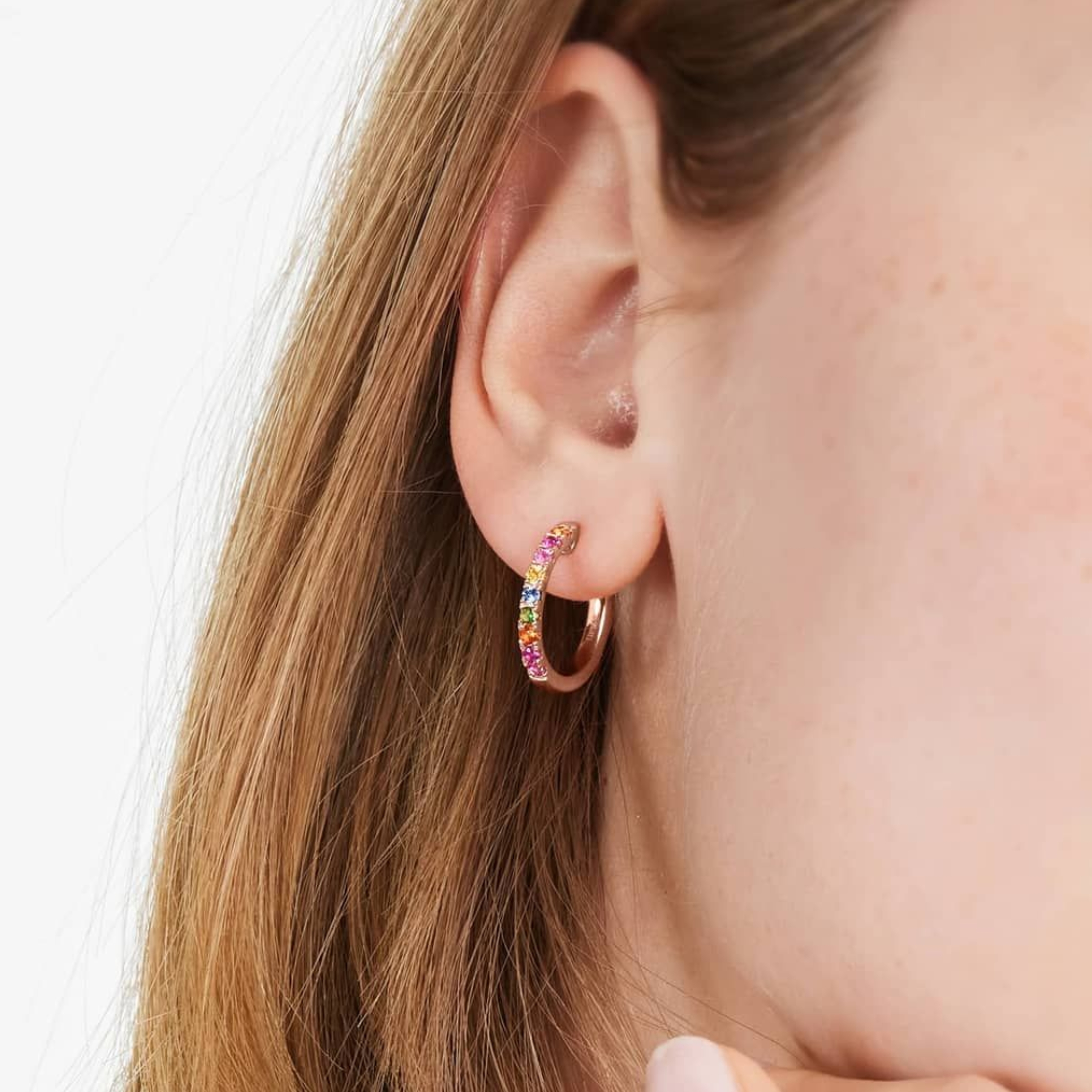 14K Rose Natural Multi-Gemstone Rainbow Huggie Hoop Earrings