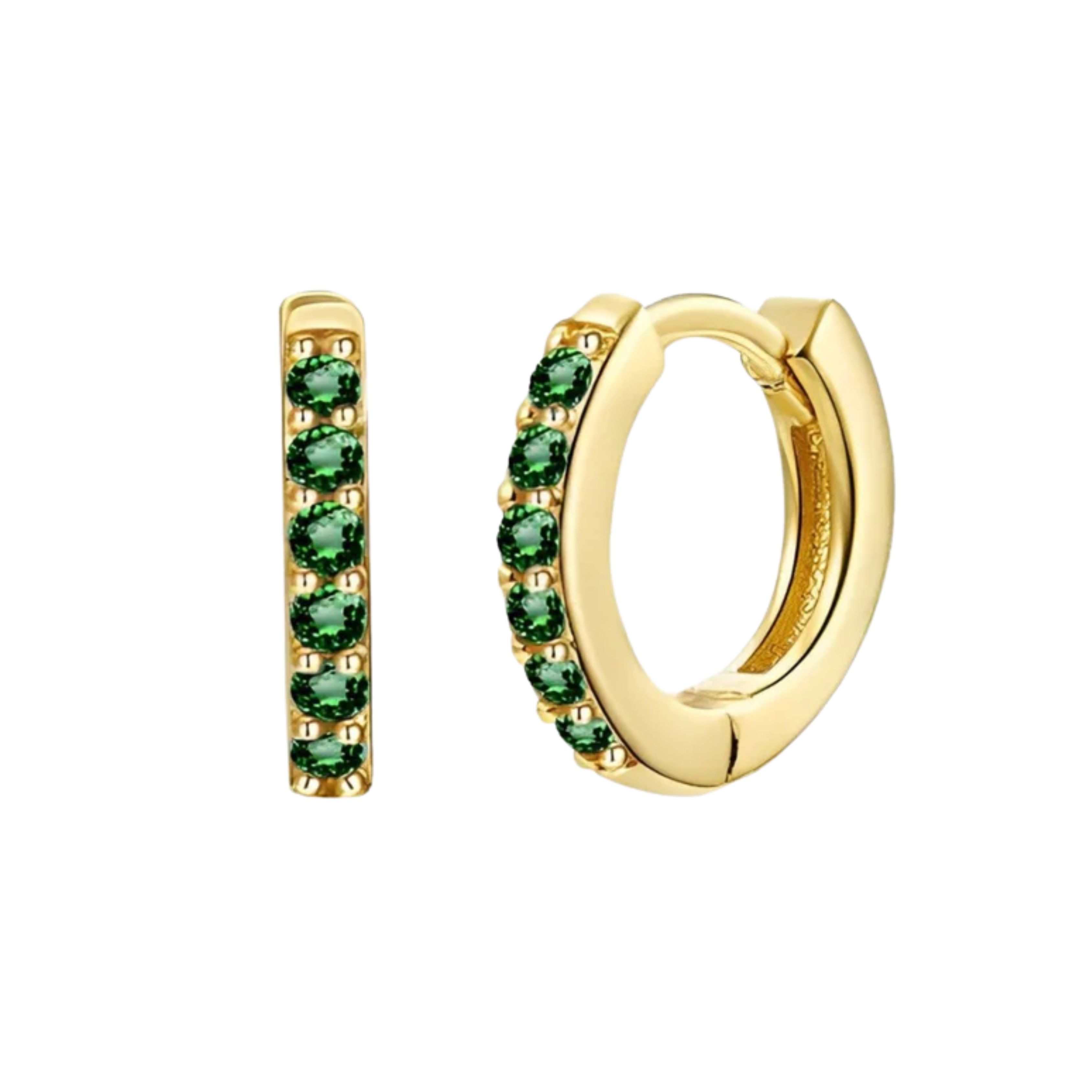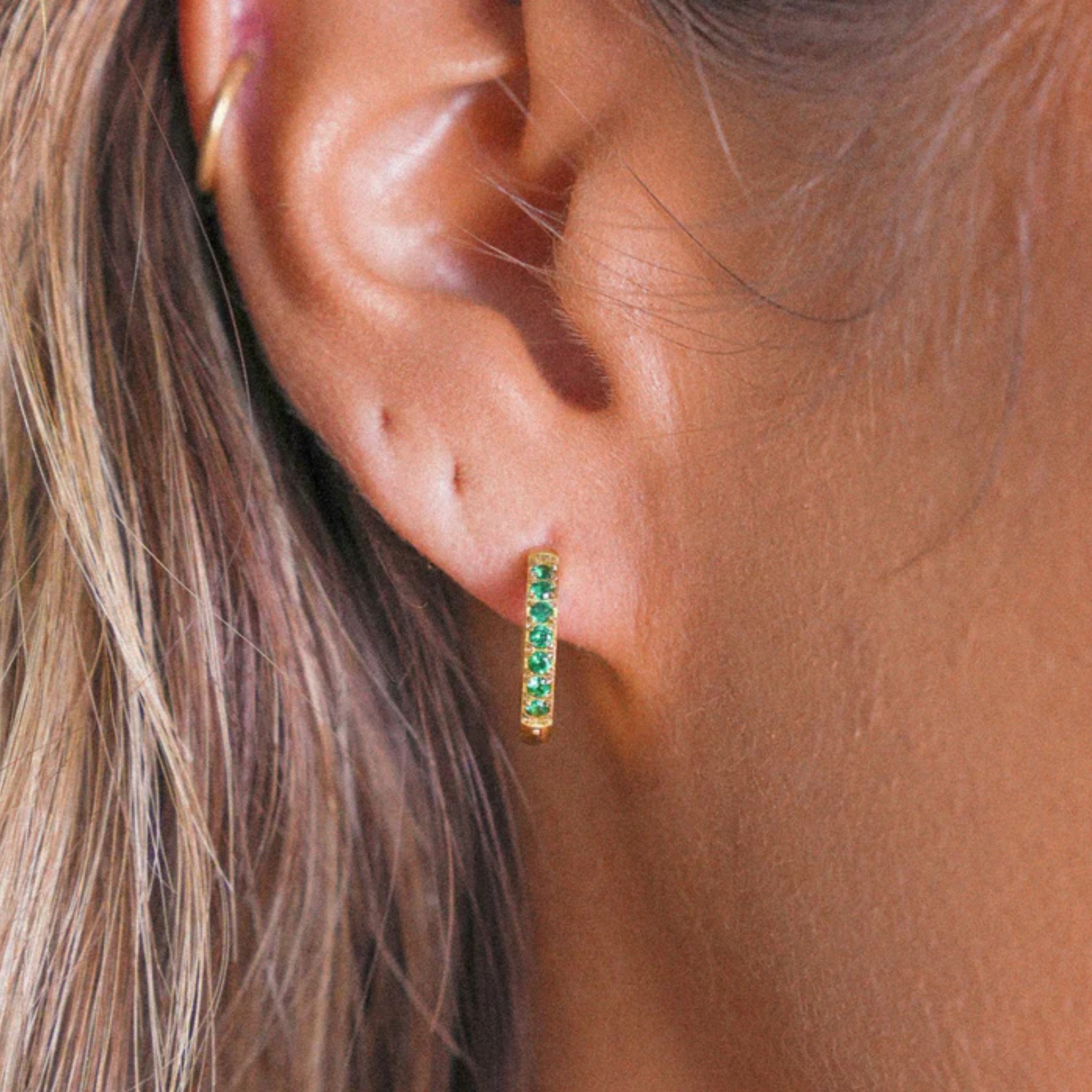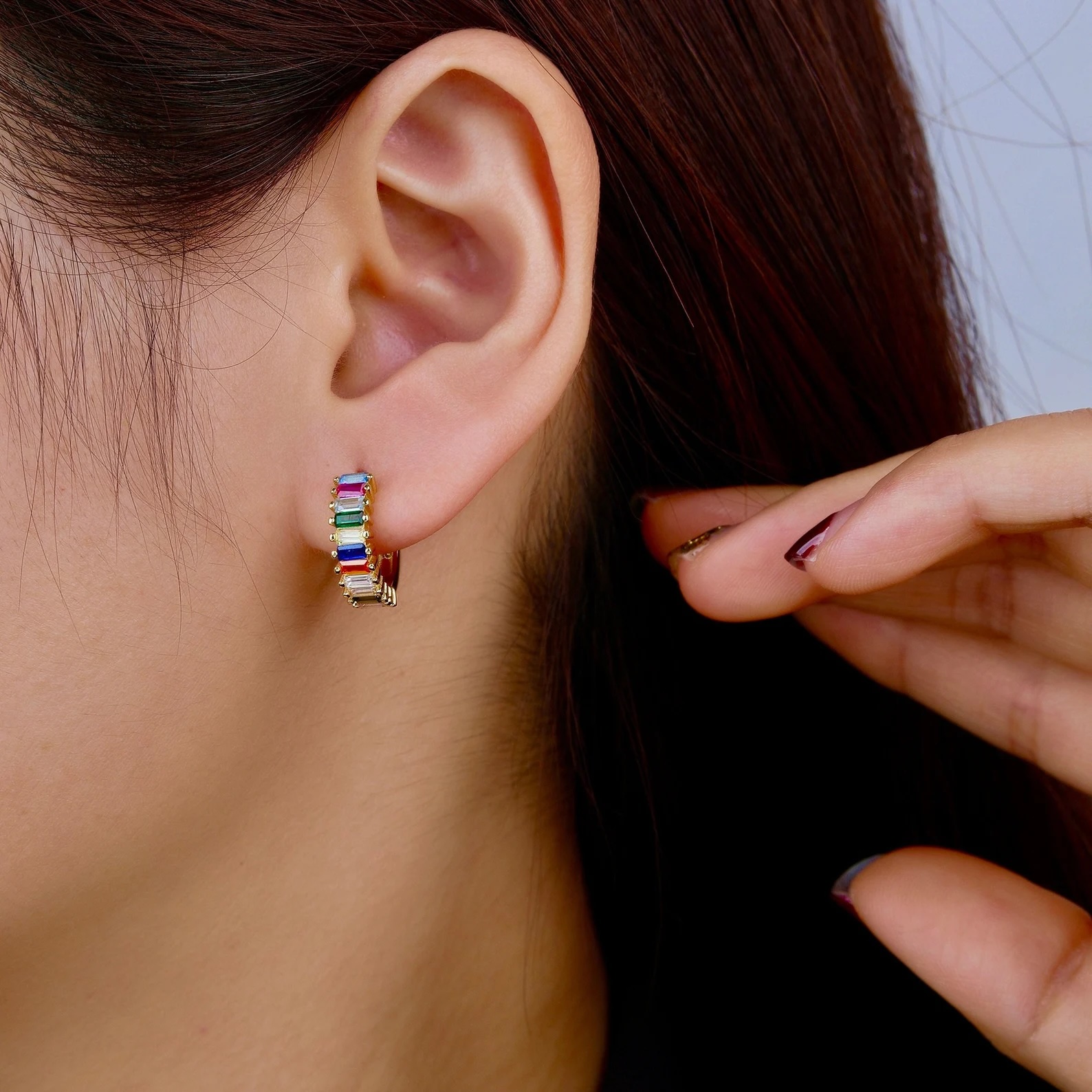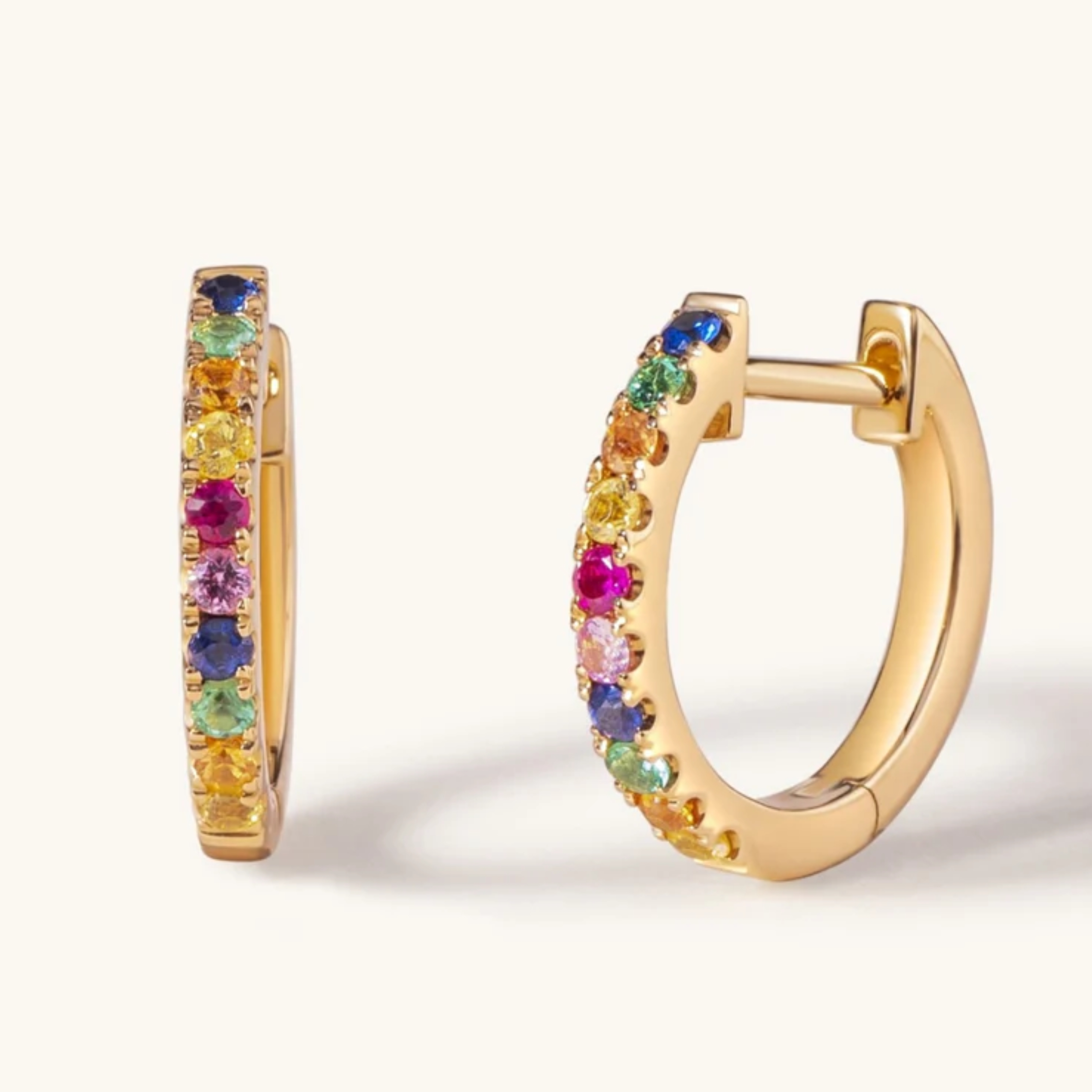 14K Yellow Gold Rainbow Gemstone Huggie Earrings