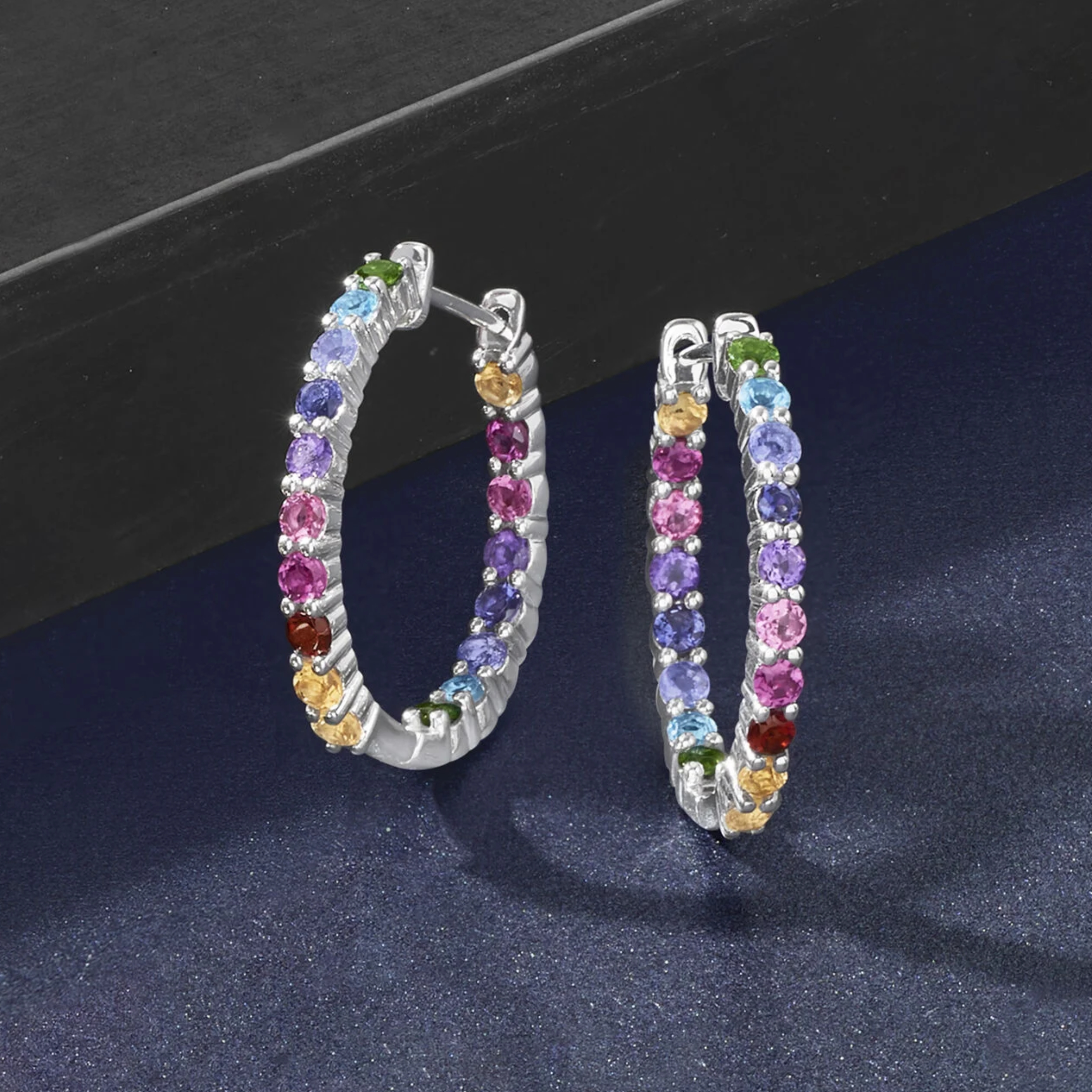 Rainbow Gemstone Hoop Earrings Sterling Silver