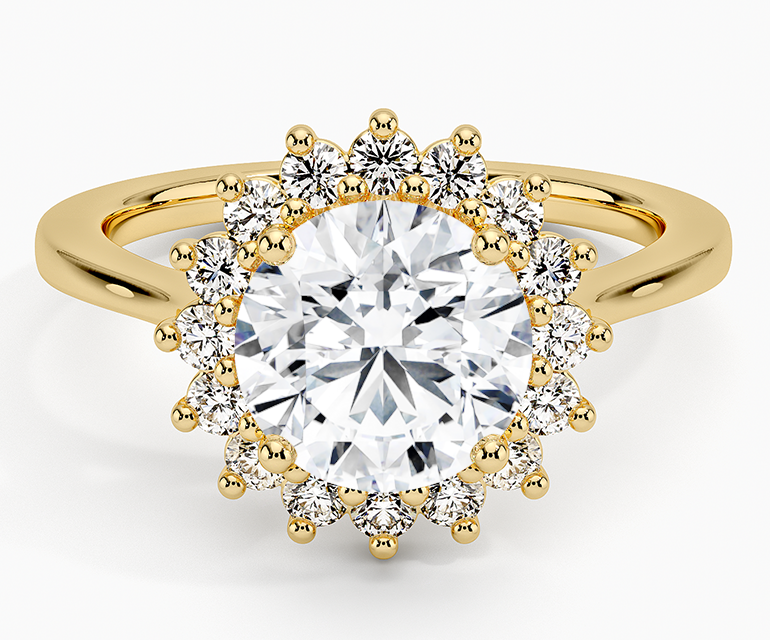 This stunning 2.25ctw Sunburst Halo Diamond Engagement Ring features a radiant center diamond surrounded by a burst of smaller diamonds, creating a dazzling sunburst effect. Set in a beautiful 14K yellow gold band, the combination of the warm gold and sparkling diamonds exudes timeless elegance and brilliance, making it the perfect symbol of love and commitment.
