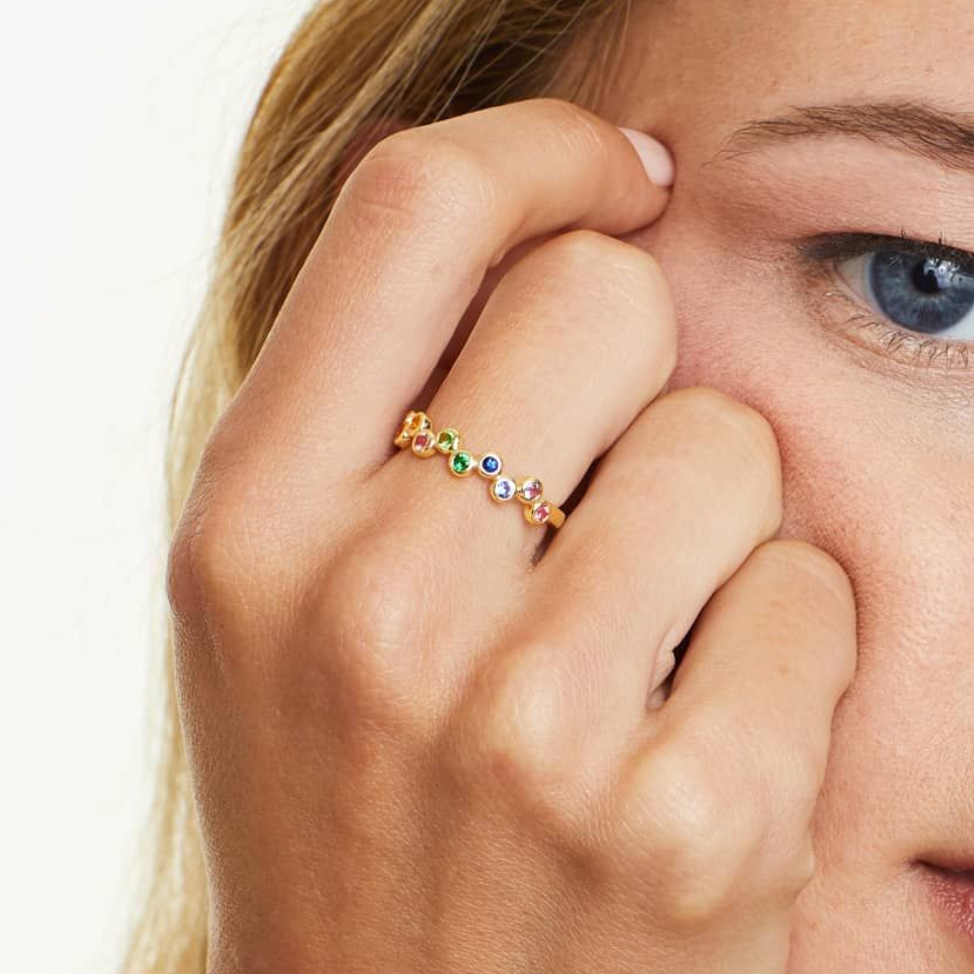 Zig Zag Lab Grown Gemstones Bezel Set Ring 14K Yellow Gold