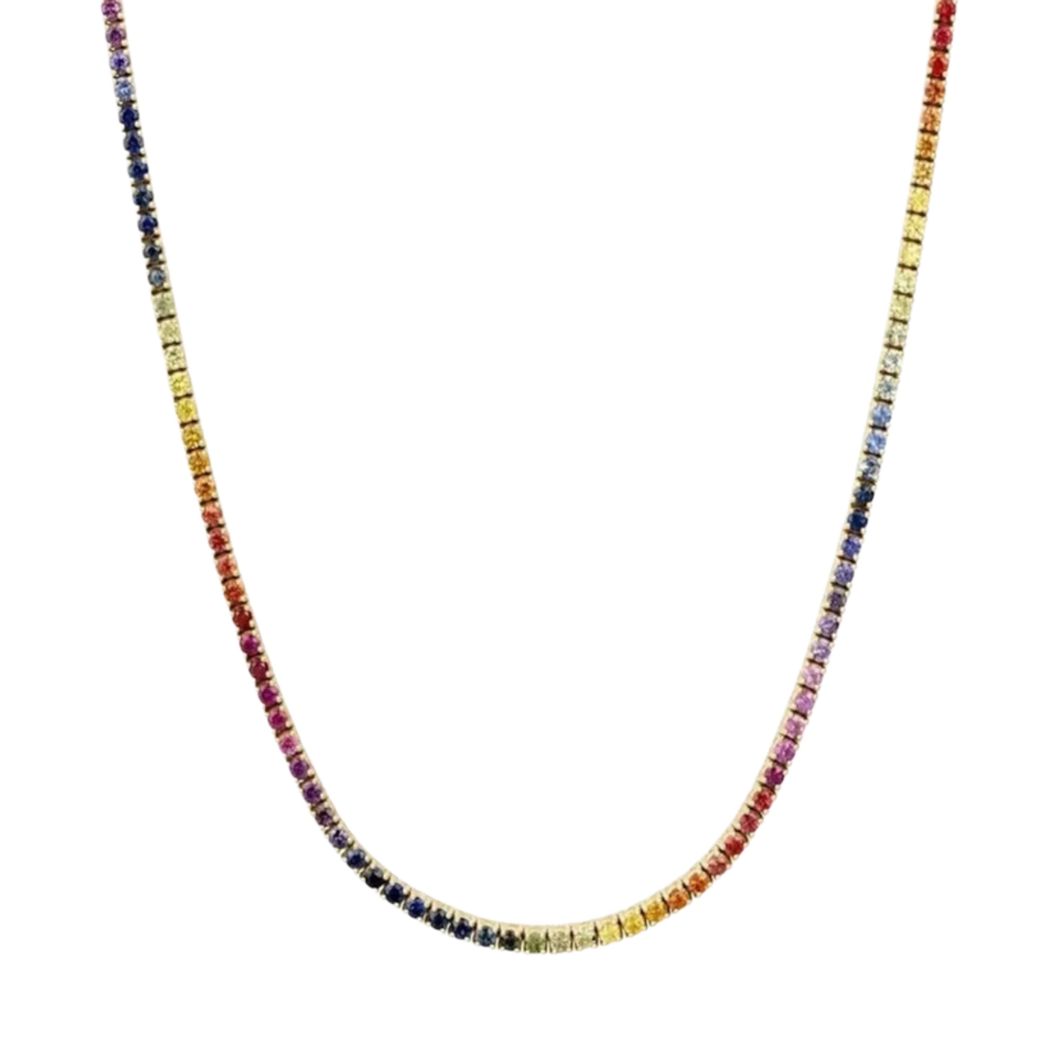 5CT Rainbow Sapphire Tennis Necklace 14K Yellow Gold