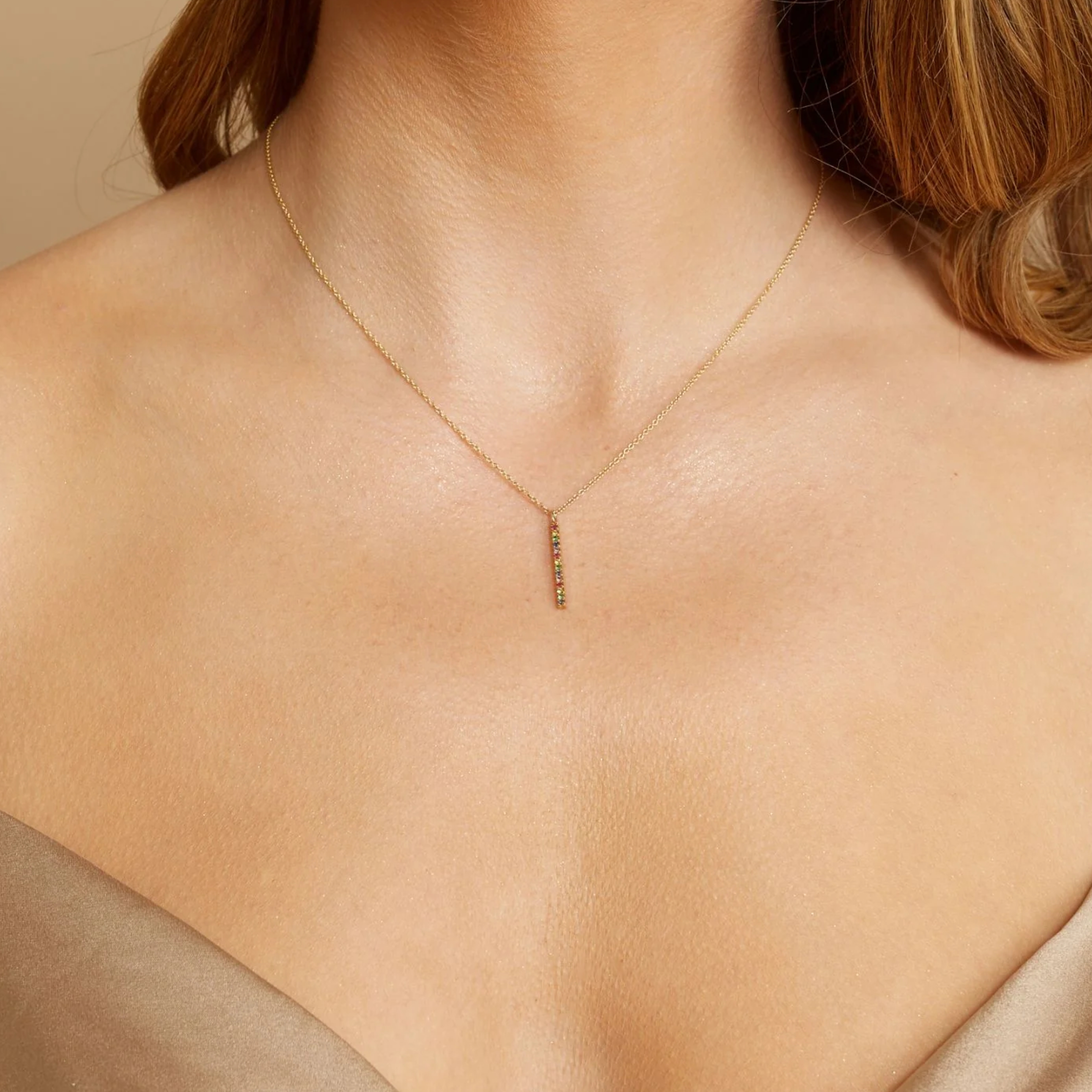 Rainbow Bar Necklace 14K Yellow Gold, 0.10ct colored sapphires