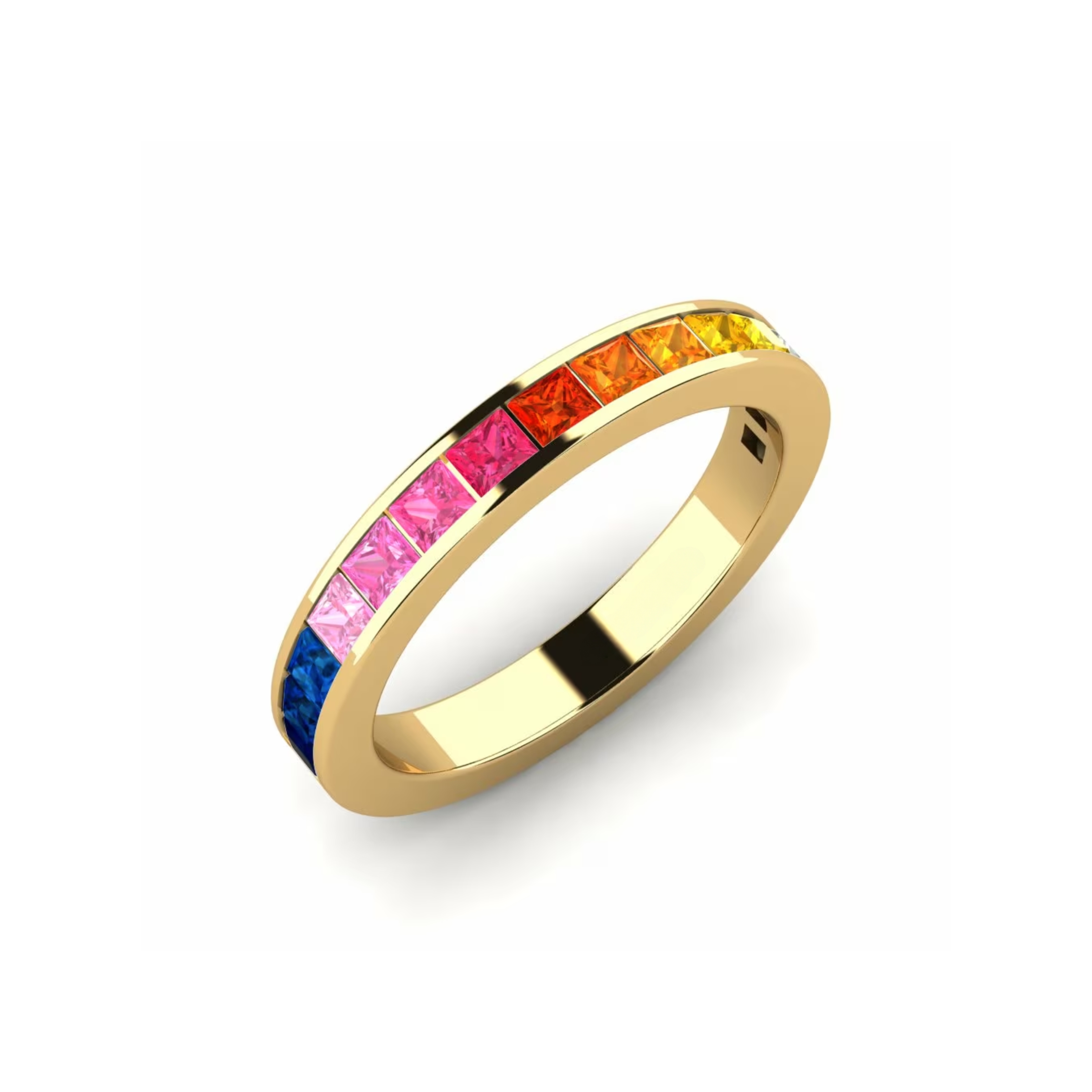 Princess Cut Sapphire Multi-Color 18K Yellow Gold Ring