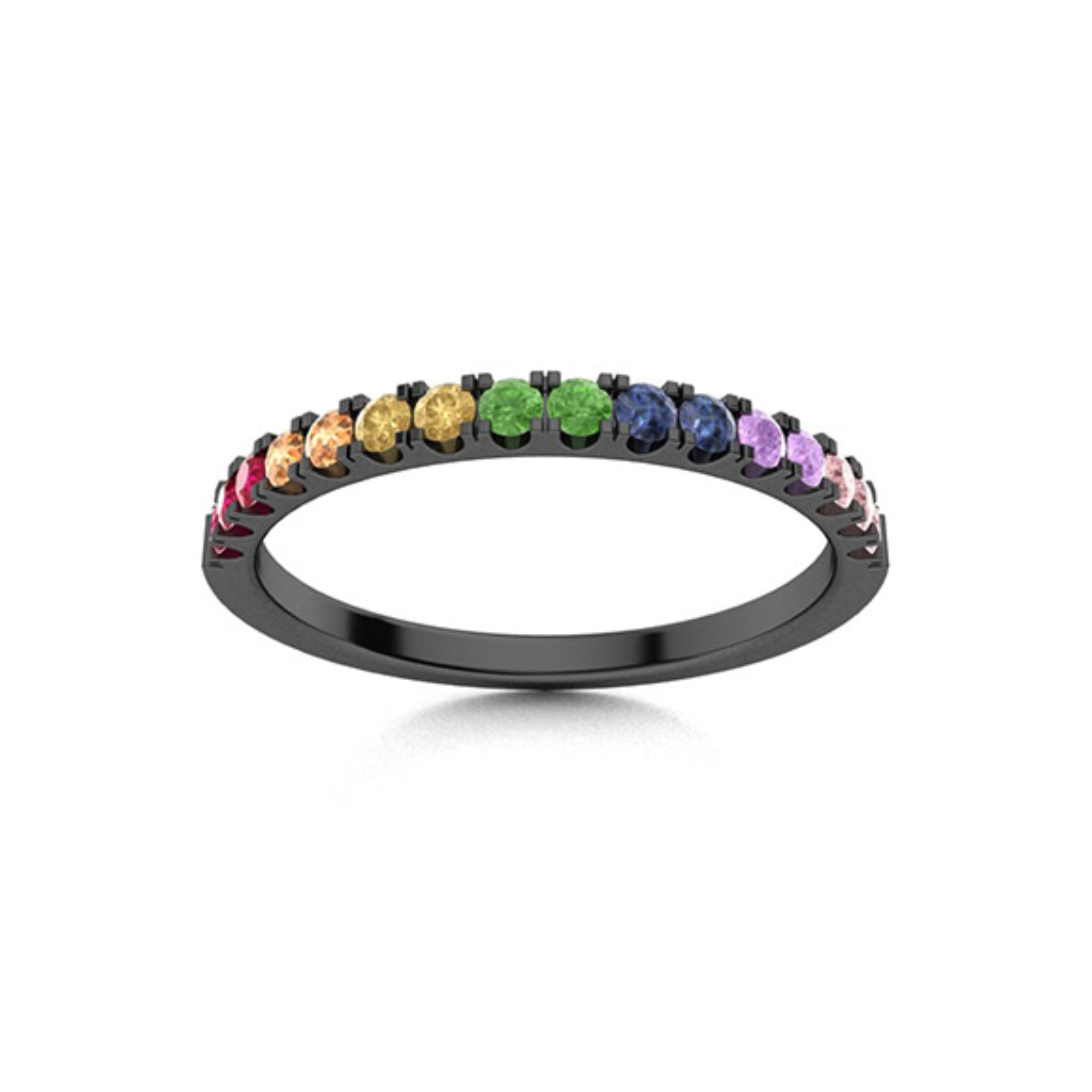Rainbow Multi-Colored Sapphires, 10K Black Gold Wedding Ring