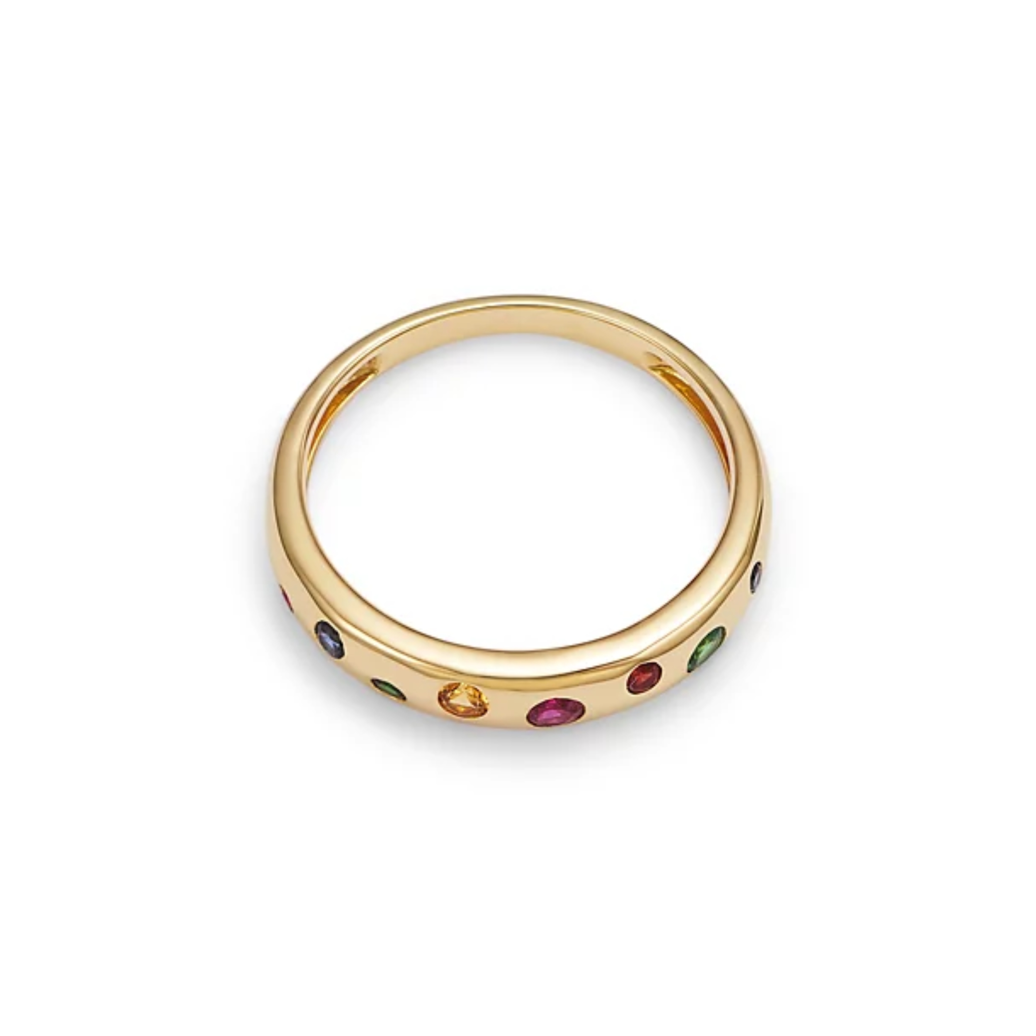 Rainbow Sapphire Disc Wedding Band 14K Yellow Gold, Lab Grown Colored Sapphires
