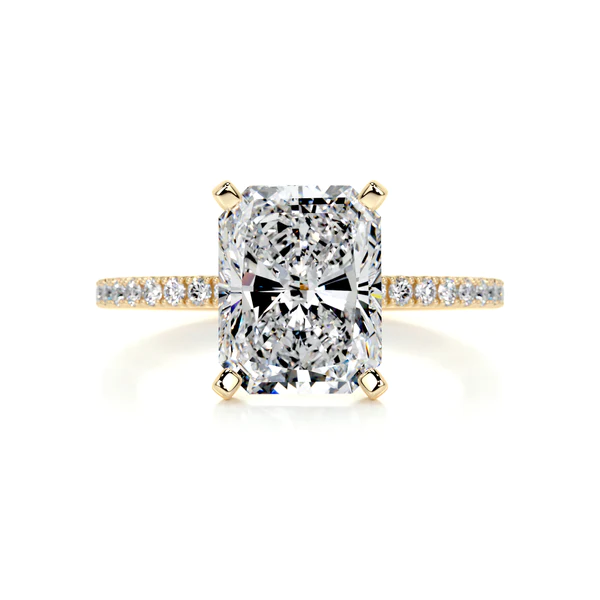 Experience the epitome of ethical luxury with our 3.33 carat Lab Grown Radiant Cut Diamond, embraced by a captivating 14K White Gold (WG) or Yellow Gold (YG) setting adorned with a delicate halo of 0.16 carats of dazzling diamonds. Responsibly sourced and environmentally friendly, this magnificent piece showcases the perfect blend of beauty and sustainability. G Color, VS2 Clarity
