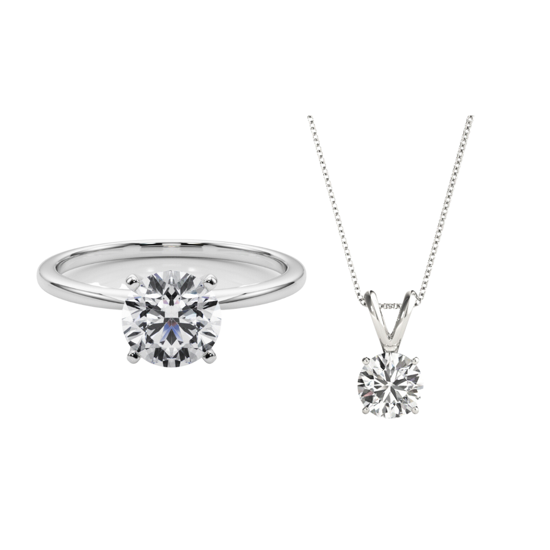 2.03 ct. Round Cut Diamond Solitaire Ring in 14K White Gold with a Free Lab Grown 1.05 ct. Diamond Pendant Necklace