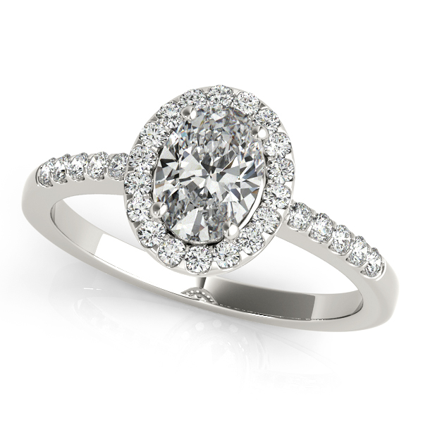 Using a slender band of white gold, this oval-cut diamond is perfectly set in a halo of shining stones. While the ornately-set gems frame the piece's shape, the diamond brings a fullness and beauty that makes it the perfect accessory for a night out. Available in White, Yellow, and Rose Gold.