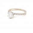 With an ornate French pave setting, this beautiful engagement ring provides an elegant style that perfectly complements the brilliant cut diamond centerpiece. Make your proposal perfect with this glittering piece! Available in White, Yellow, and Rose Gold.