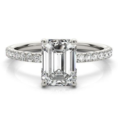 Set in an ornate white gold band, this princess cut diamond shines from all angles. Choose an engagement ring that will add an unbeatable gleam to your big day! Available in White, Yellow, and Rose Gold.