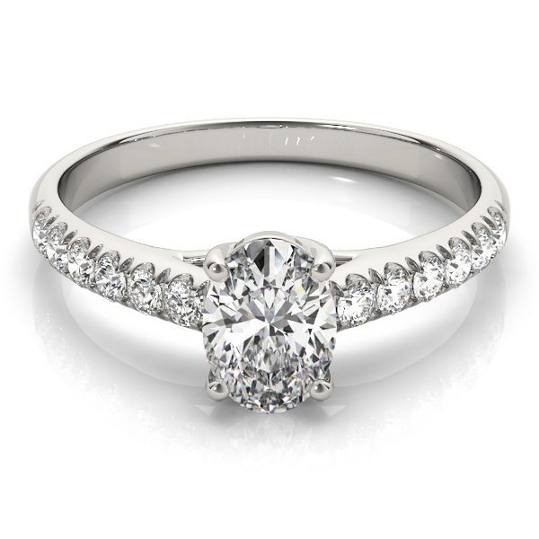 Surrounded by eye-catching accent stones, this oval-cut diamond commands attention. This ring is the perfect accessory to formal and casual outfits alike. Available in White, Yellow, and Rose Gold.