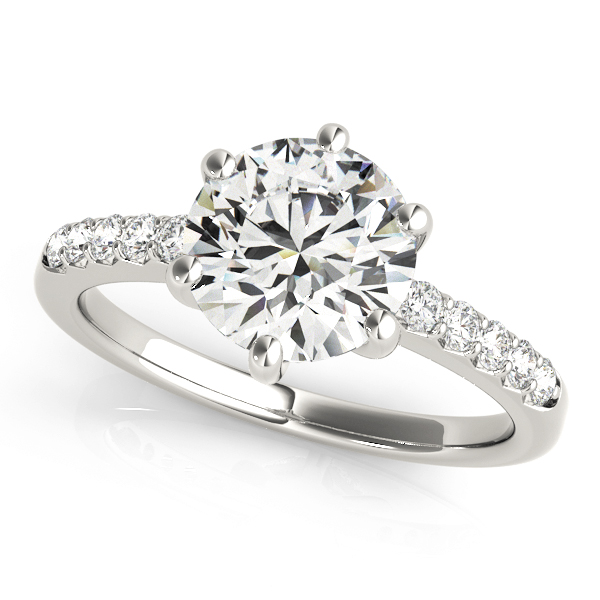 This dazzling round-cut diamond engagement ring provides a minimalistic appeal. Using expertly encrusted side accent stones, this elegant piece combines style with comfort, making it the perfect piece for your loved one. Available in White, Yellow, and Rose Gold.