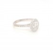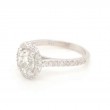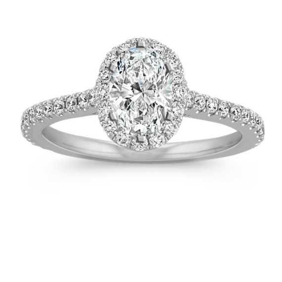 Surrounded by the finest stones, this engagement ring features a dazzling oval diamond in a lush white gold band. The piece also uses its halfway diamond setting to bring class and flair to any outfit! Available in White, Yellow, and Rose Gold.