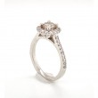 This round cut diamond halo ring offers a glittering white gold halo set with expertly cut side stones. Offering both elegance and simplicity, this engagement ring is a tasteful selection for both formal and casual occasions. Available in White, Yellow, and Rose Gold.