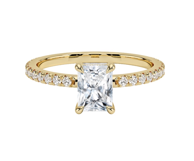 2.24ctw Radiant Cut Diamond set in a 14kt Yellow Gold Accented Diamond setting