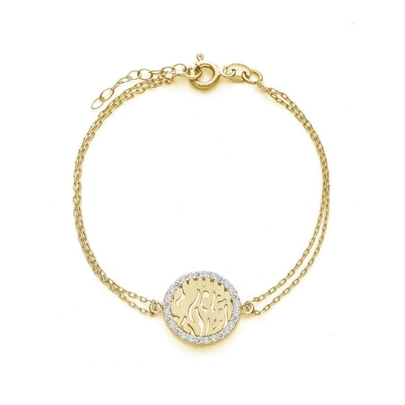 Shema Israel Chain Bracelet in Yellow Gold Plate with Stones