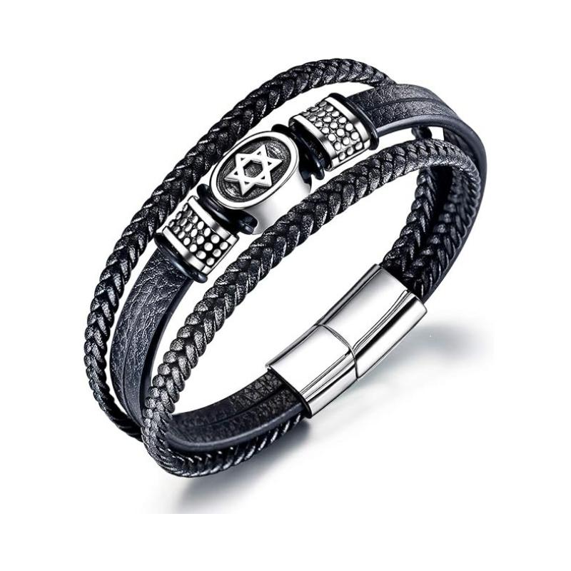 Titruebe Jewish Magen Star of David Bracelet Men Multi-Layer Braided Leather Bracelet