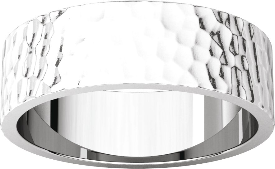 51530 / 14K White / 8.5 / 6 Mm / Polished / Flat Band With Hammer Finish. Available in White, Yellow and Rose Gold.
