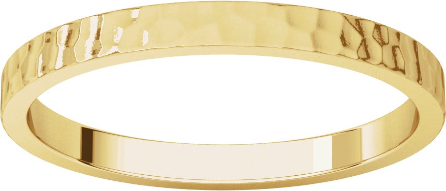 51530 / 14K Yellow / 7 / 2 Mm / Polished / Flat Band With Hammer Finish. Available in White, Yellow and Rose Gold.