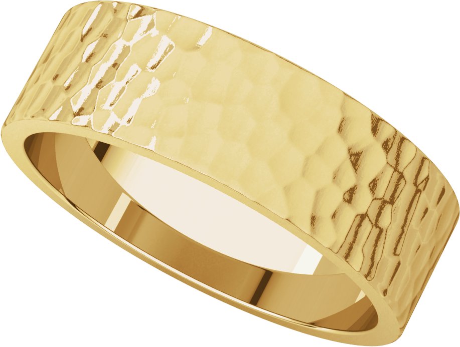 51530 / 14K Yellow / 8.5 / 6 Mm / Polished / Flat Band With Hammer Finish. Available in White, Yellow and Rose Gold.